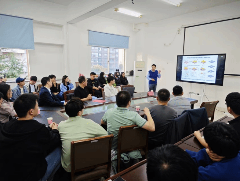 罗驹华代表全院师生对曹茂盛教授的到来表示热烈欢迎,介绍了曹茂盛的学术成就。报告会上,曹茂盛教授以《发展中的二维电磁功能材料》为题,详细介绍了二维材料的发现历史、二维材料的性质、二维电磁功能材料原创工作、二维材料与电磁功能器件及对二维电磁功能材料未来发展趋势的几点思考。交流环节中,曹茂盛教授与参会师生针对二维材料的电学、力学及热学性质以及二维材料在电磁功能器件如智能隐形眼镜、自驱动电磁能转换器、微波制动器方面的应用背景、关键问题、研究进展及国内外市场前景等问题上展开了深入的交流和讨论。