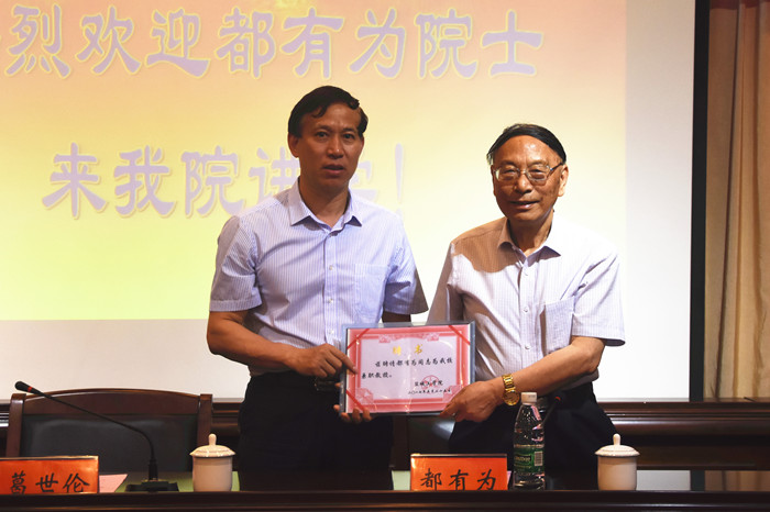 校党委书记葛世伦向都有为教授颁发聘书