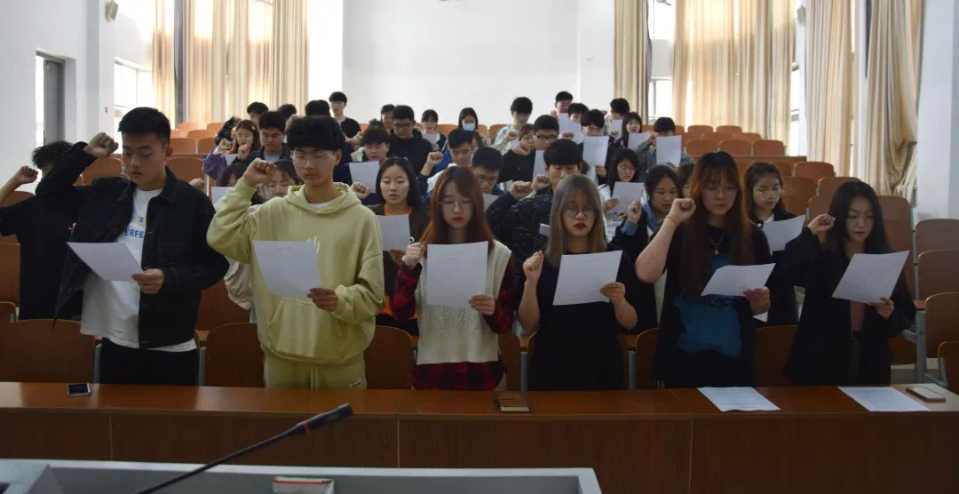 在本次纪念五四运动特别团日活动开启之前,由赵雪妍带领全体青马班成员重温入团誓词。成员们高举右手,紧握右拳,再次郑重地宣誓,宣誓铿锵有力,慷慨激昂。成员们举起的右手紧握的是共青团员的忠诚,专注的目光凝聚着共青团员的坚定。教室里回荡的神圣庄严的入团誓词,仿佛又让在场的全体成员回到了入团时那令人激动而又难忘的时刻。作为一名优秀的共青团员,盐粒子们要勤奋学习,吃苦在前,享受在后,为共产主义事业而奋斗!