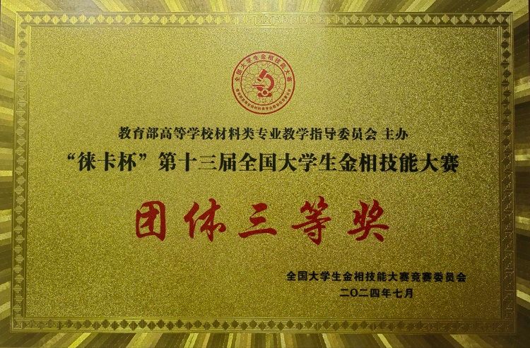 第十三届全国大学生金相技能大赛决赛于7月25日-29日在黄冈师范学院举行。在孙瑜、庞绍平、宋娟三位老师指导和带领下,我院金属材料工程专业学生谈鑫获得大赛一等奖,梁旗香、苏高均获得大赛二等奖。同时,参赛团体获得大赛三等奖。至此,我院学生已在该项赛事获得一等奖10项,位列全国高校前列。